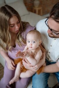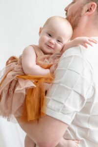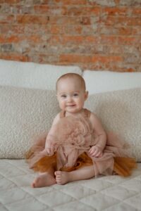 Many families choose to document milestones throughout the first year, especially around 6–8 months when babies start sitting independently and around their first birthday.